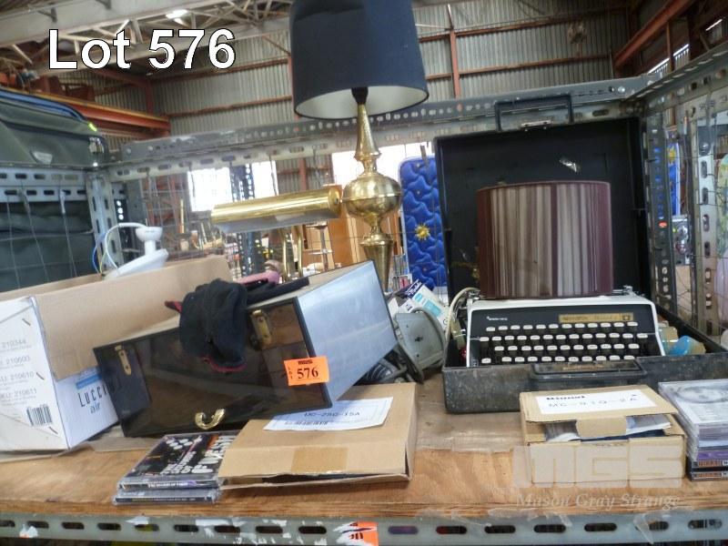 ASSORTED TABLE LAMPS, REMINGTON TYPEWRITER, CEILING FAN, ETC