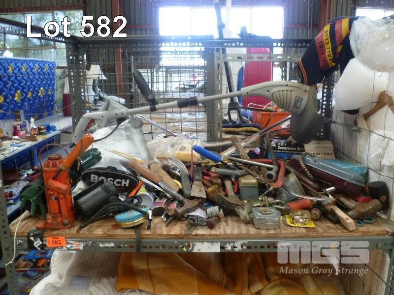 ASSORTED HAND TOOLS, GARDEN TOOLS, ETC