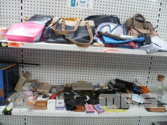 ASSORTED HANDBAGS, PURSES, HANKIES, ETC, 2 x SHELVES