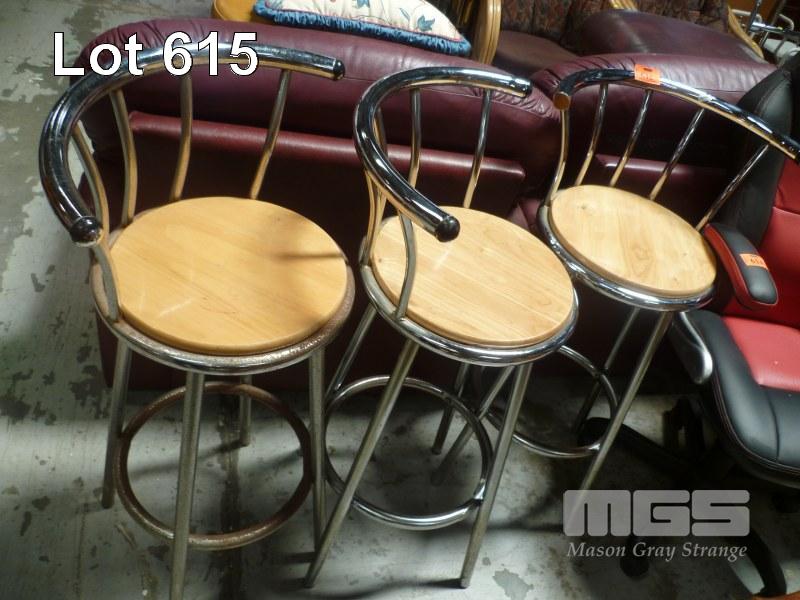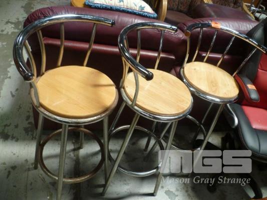 3 x BAR STOOLS, CHROME FRAME, (SIGNS OF RUST)