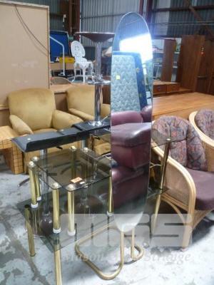 BRASS COLOURED, FRAMED FURNITURE, INC COFFEE TABLE, 3 x SIDE TABLES & CHEVAL MIRROR