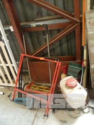 2 X BACK PACK SPRAYERS, TRESTLE LEGS & ASSORTED GARDENING