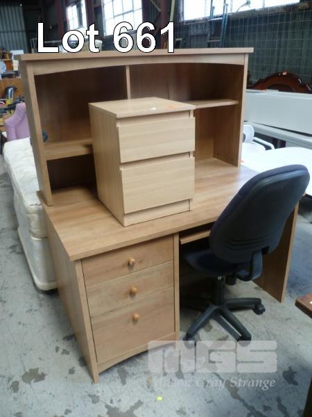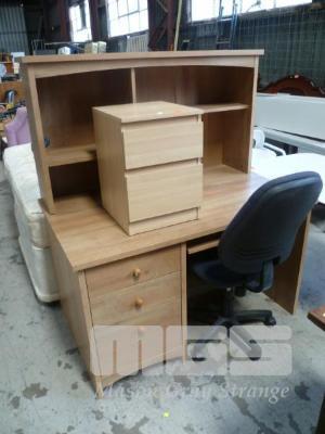 TIMBER LAMINATE STUDENTS DESK WIT HUTCH, OFFICE CHAIR & 2 DRAWER UNIT