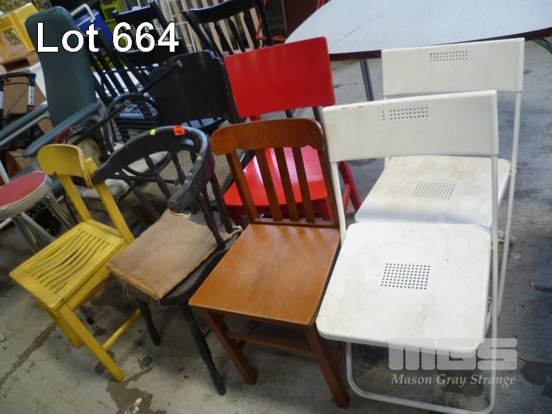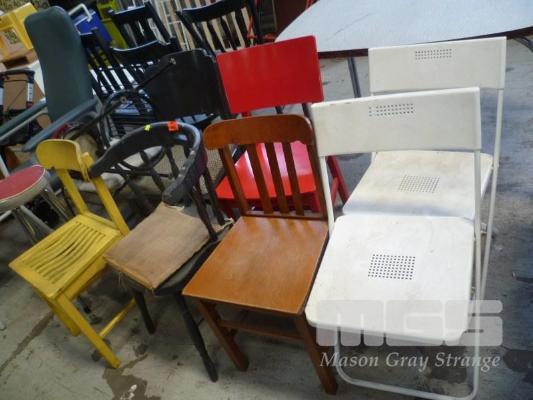 6 X ASSORTED DINING CHAIRS, 2 X STOOLS & 2 X FOLD UP OUTDOOR CHAIRS