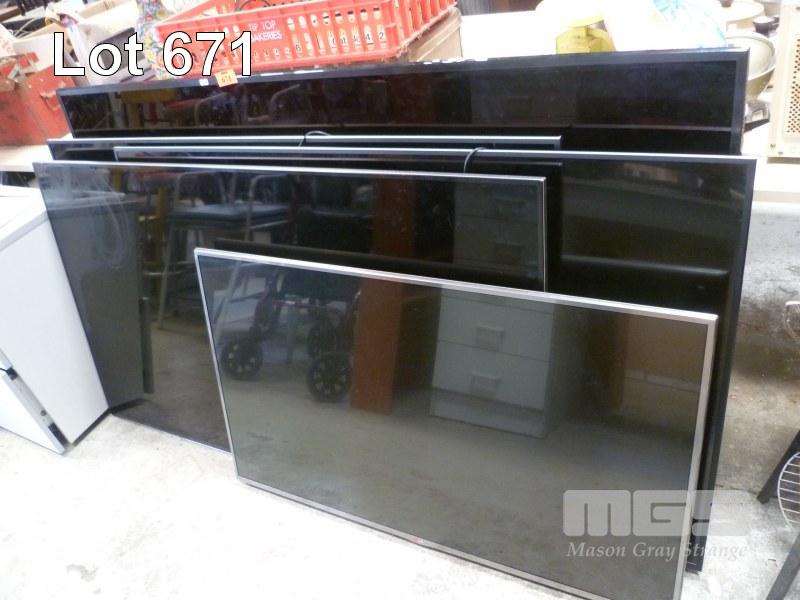 5 x ASSORTED FLAT SCREEN LCD TV'S, 50" UP TO 75", NO REMOTES, ALL FAULTS, REQUIRE REPAIRS