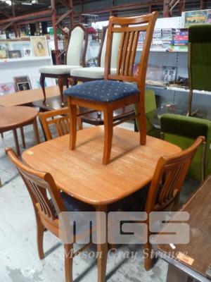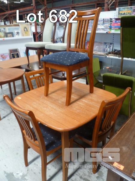 TIMBER 5 PIECE DINING SUITE INC EXTENSION TABLE & 4 x DINING CHAIRS, BLUE FABRIC