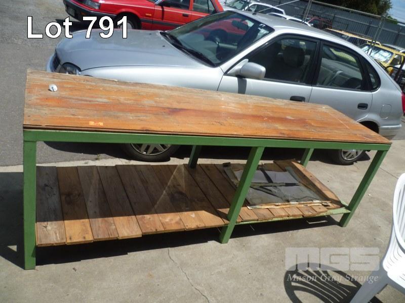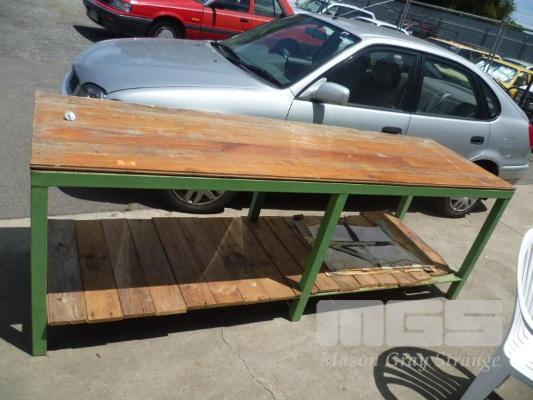 METAL FRAMED WORK BENCH, TIMBER TOP, 240cm (L)