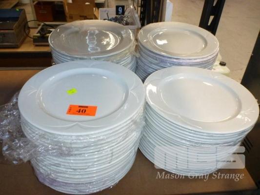 80 (APPROX) x MATCHING WHITE PLATES, 27cm