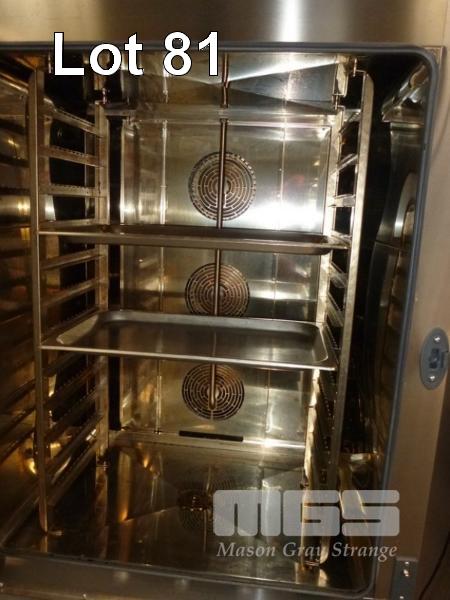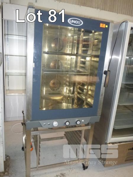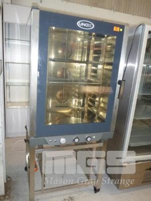 COMBI OVEN, UNOX MOD: XV893 12 TRAY CAPACITY STAINLESS STEEL CASED, 415V ON MOBILE STAND