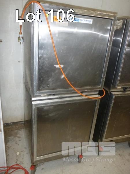 HOT BOX, 2 DOOR, 175 x 70cm STAINLESS STEEL CASED, 240V ON CASTORS