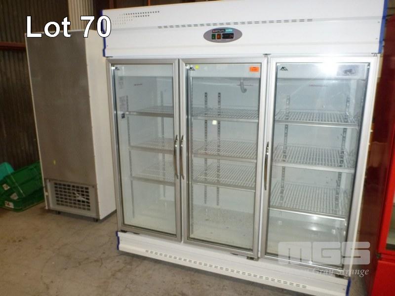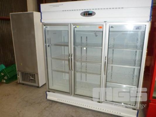 UPRIGHT 3 DOOR DISPLAY FRIDGE, ANVIL-AIRE, GDJ1880 SELF CONTAINED UNIT, 240V