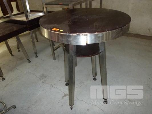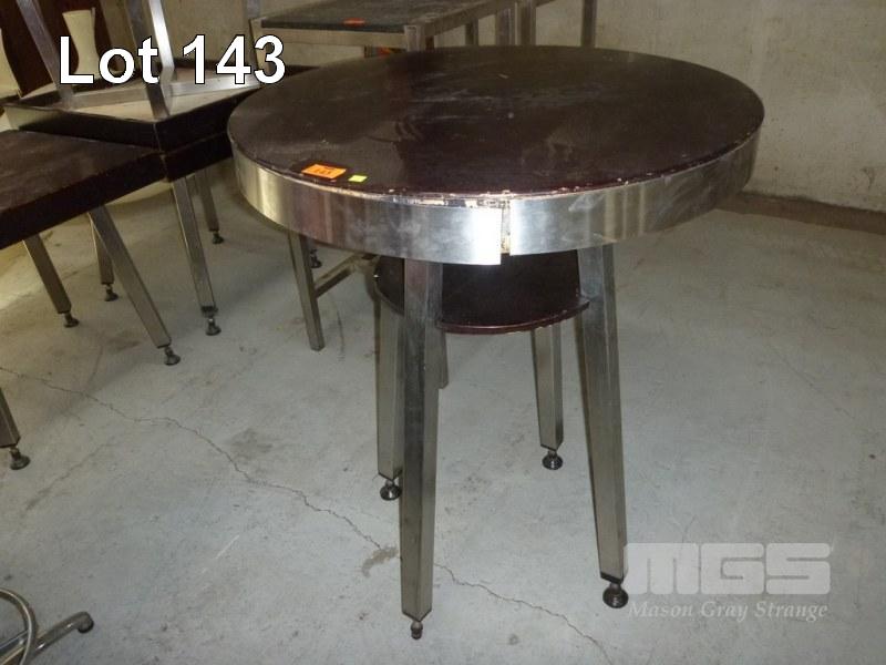 2 x DRY BARS, 95cm DIAMETER, TIMBER TOP, STAINLESS STEEL FRAME