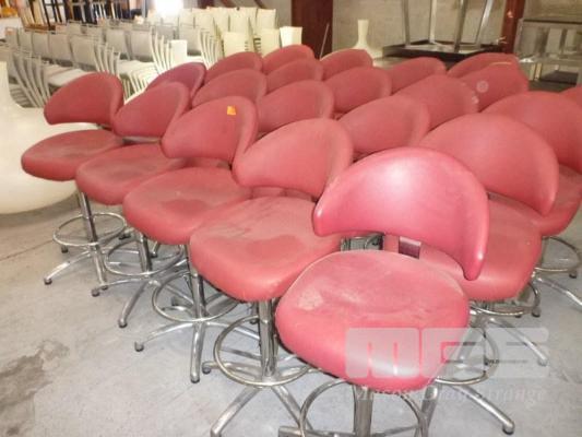 20 x SWIVEL BAR/POKIE STOOLS, MAROON VINYL, (SOME RIPPED)