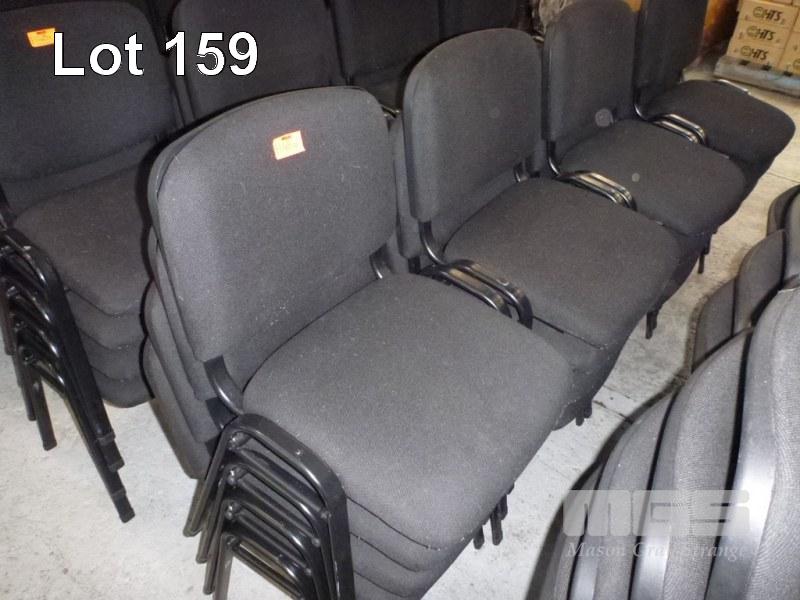 16 x STACKABLE DINING /FUNCTION CHAIRS, BLACK FABRIC, BLACK STEEL FRAME