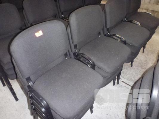 16 x STACKABLE DINING /FUNCTION CHAIRS, BLACK FABRIC, BLACK STEEL FRAME