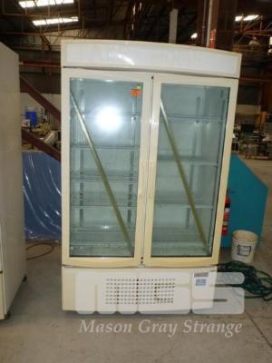 UPRIGHT 2 DOOR DISPLAY FRIDGE, SANYO SRM CD1ODAS SELF CONTAINED UNIT, 240V