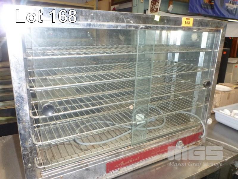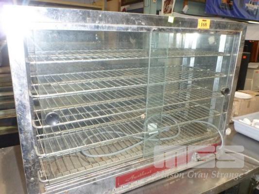 PIE WARMER, AUSTHEAT STAINLESS STEEL, GLASS FRONT SLIDING GLASS DOORS, 5 TIER, 240V