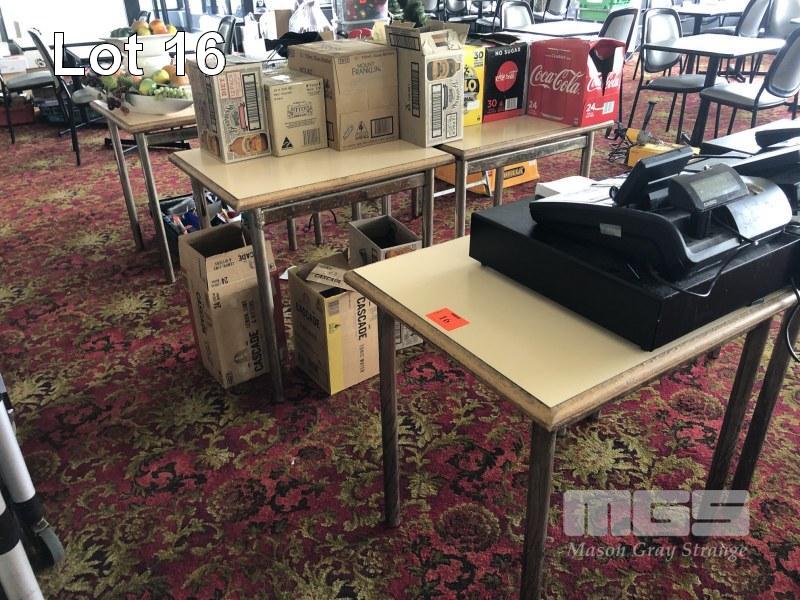 6 x STEEL FRAME LAMINEX TOP TABLES