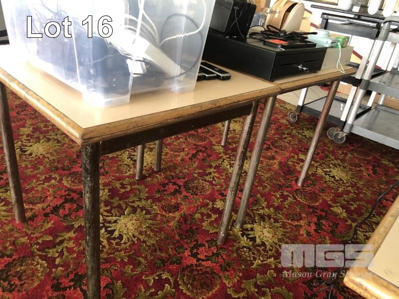 2 x STEEL FRAME LAMINEX TOP TABLES