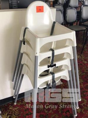 4 x HIGH RISE PLASTIC BABY CHAIRS
