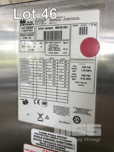 SOFT SERVE ICECREAM MACHINE, TAYLOR CROW MOD: C708-58 S/NO: M6101481 PART NO: C70858FW23 DATE TESTED: 10/2016 240V