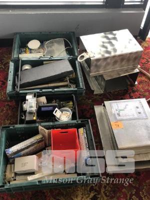 ASSORTED HARDWARE, TOOLS, STAINLESS STEEL BAR RISERS, ETC
