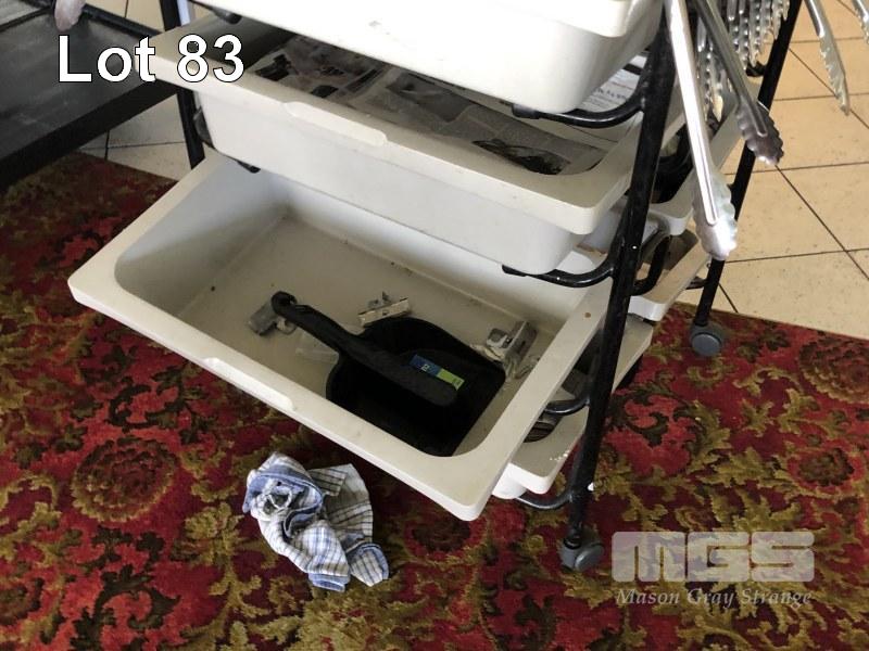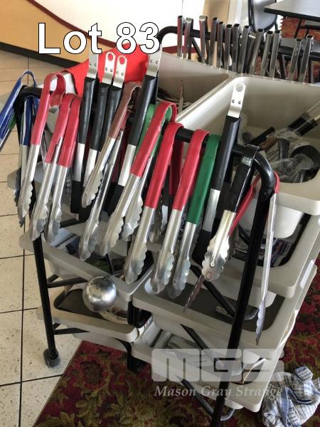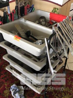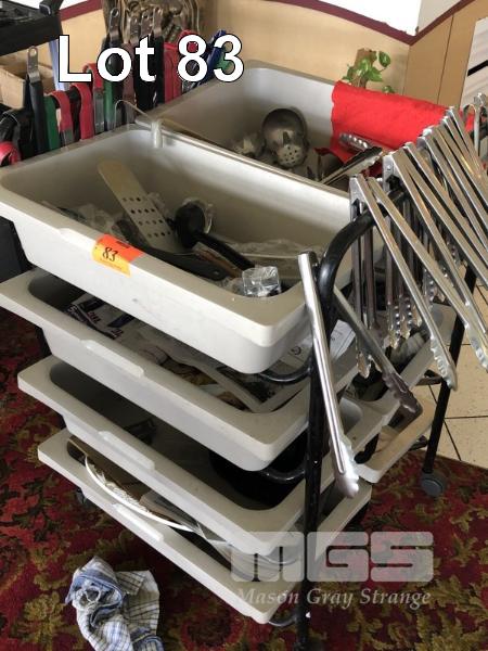 8 DRAWER UTILITIES TROLLEY INCLUDES SMALL & LARGE TONGS, LADLES, SPOONS, ETC
