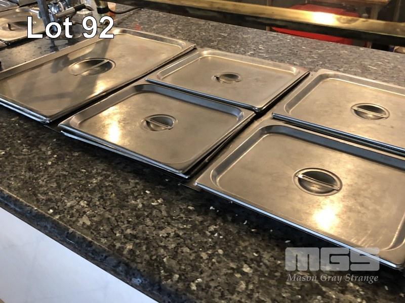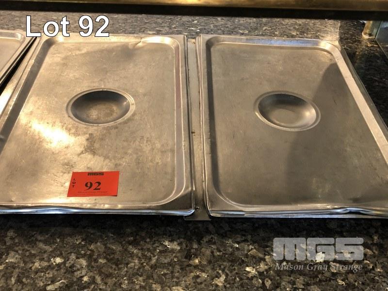 14 x STAINLESS STEEL TRAYS WITH LIDS 6 @ 500 x 300mm 8 @ 300 x 250mm