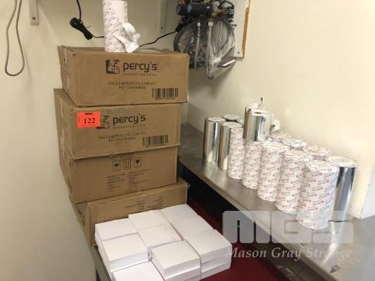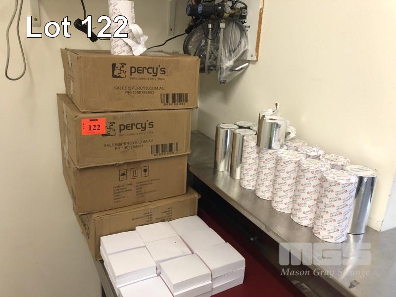 LARGE QUANTITY PERCYS THERMAL PAPER REELS, APPROX 200 x ROLLS & APPROX 25 x WAITERS NOTE PADS