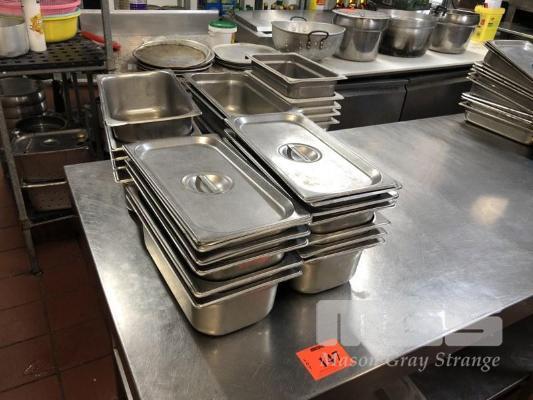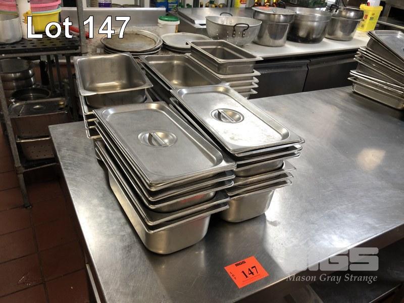 25 x GASTRONORM 300 x 180mm STAINLESS STEEL PANS WITH 2 x STAINLESS STEEL LIDS