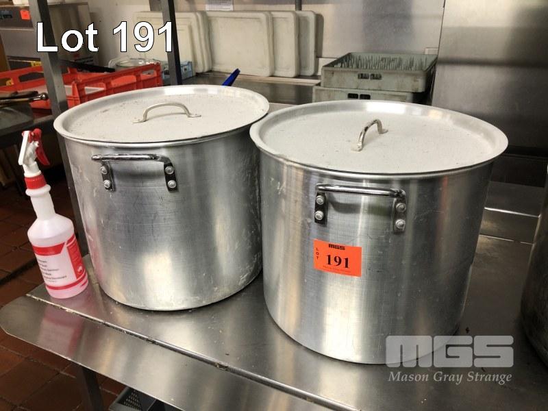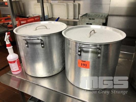 2 x ALLOY STOCK POTS WITH LIDS, 400mm