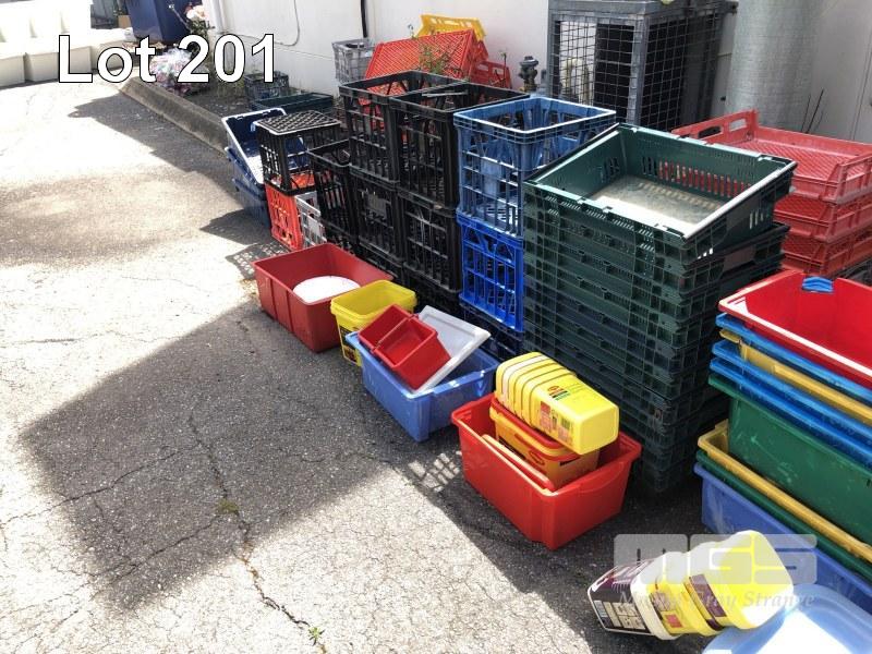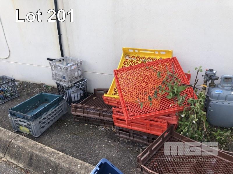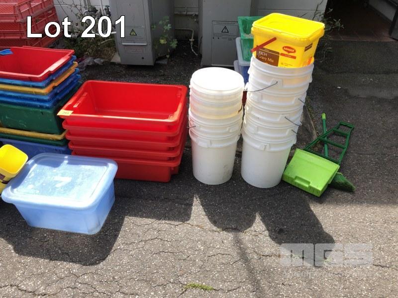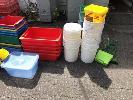LARGE QUANTITY PLASTIC TUBS, MILK CRATES, BUCKETS
