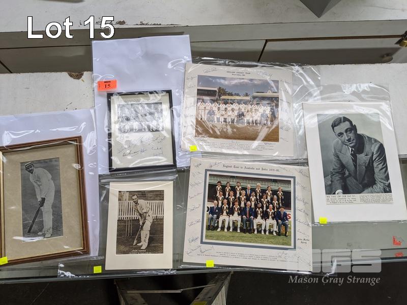 CRICKET MEMORABILIA, AUTOGRAPHED PHOTOS INC WALTER HAMMOND, JACK HOBBS, BRITISH CRICKET TEAMS 1981, 19079-80 & 1950-51