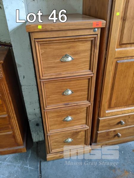 FILING CABINET, 4 x DRAWER, STAINED PINE
