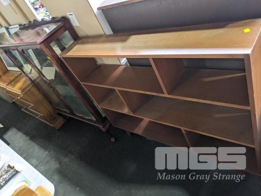 CHINA CABINET, DARK LACQUER FINISH, 2 x DOOR GLASS INLAY, MIRRORED BACK, 2 TIER GLASS SHELVES & TIMBER SHELF UNIT