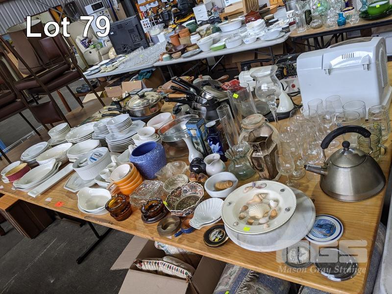 PLATES, BOWLS, BAKING DISHES, GLASSWARE, VASES, KITCHENWARE, ETC, 1 x TABLE