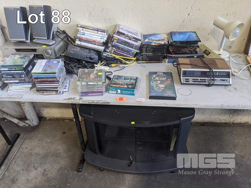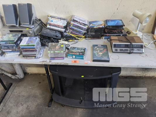 MUSIC CD'S, DVD'S & DVD PLAYER, DIGITAL CLOCK, RADIO, SPEAKERS, ETC