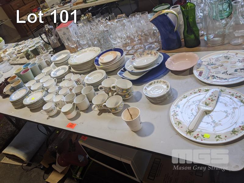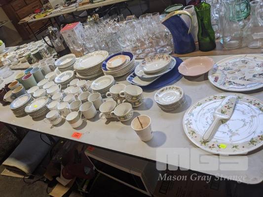 ASSORTED CROCKERY INC DINNER PLATES, SERVING DISHES, MUGS, ETC