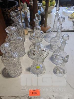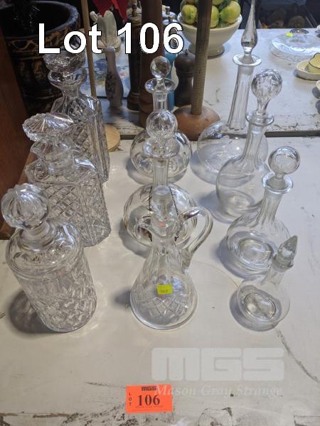 10 x GLASS/CRYSTAL WINE & WHISKEY DECANTERS