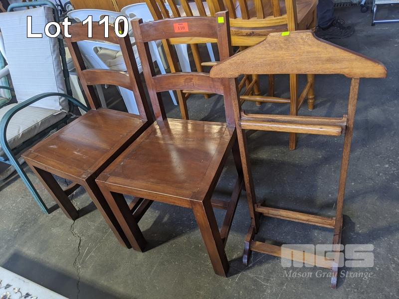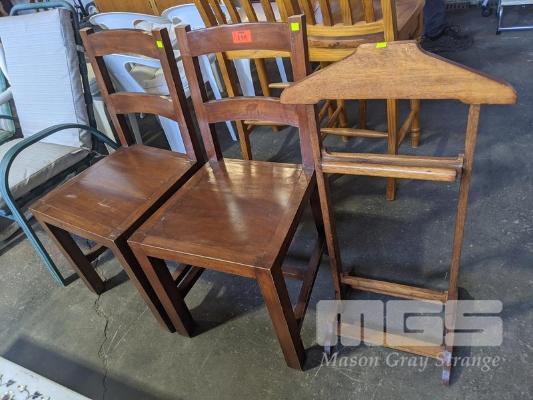 PAIR TIMBER DINING CHAIRS & TIMBER CLOTHES STAND