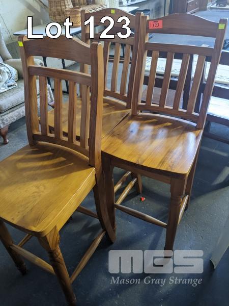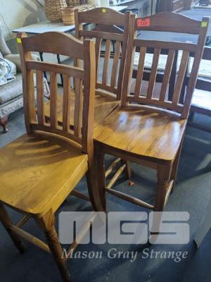 3 x BAR CHAIRS, STAINED PINE, MATCHING