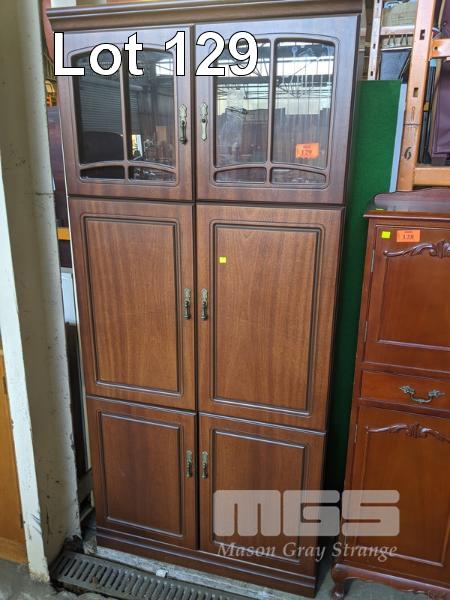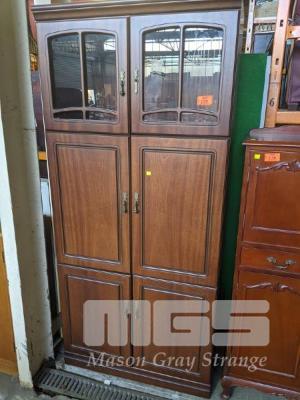 COCKTAIL CABINET, STAINED TIMBER, 6 x DOOR, 2 WITH GLASS INSERTS