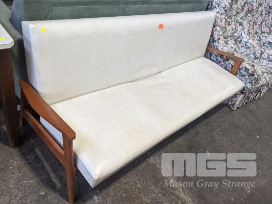 RETRO LOUNGE, CREAM VINYL & STAINED TIMBER, 4 SEATER