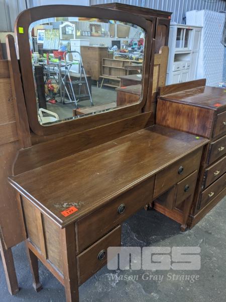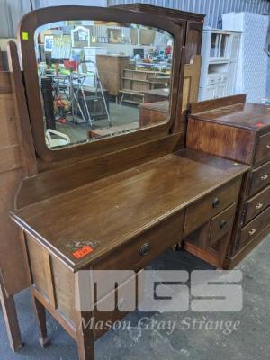 4 x DRAWER DRESSER, SWIVEL MIRROR, STAINED TIMBER