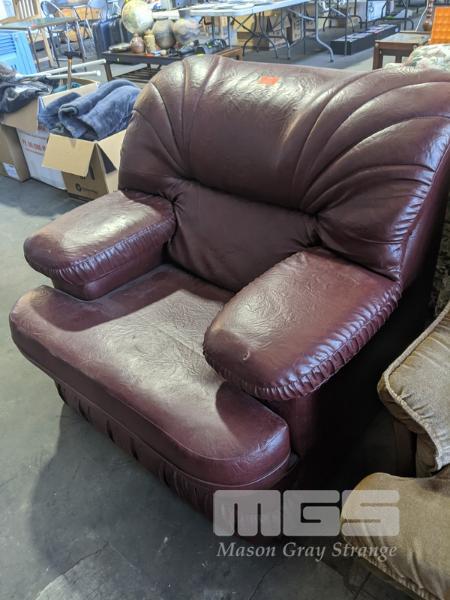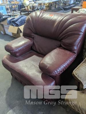 LEATHER LOOK ARM CHAIR, BURGUNDY