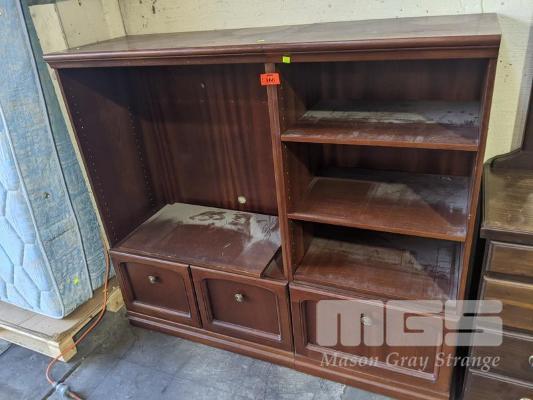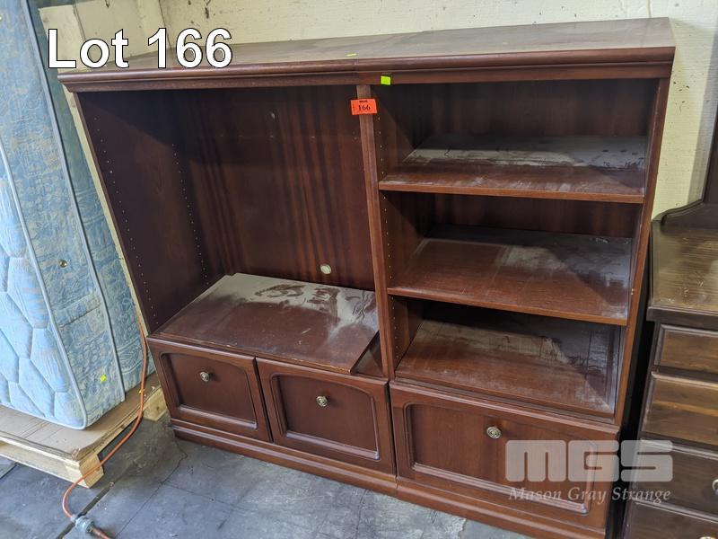 MATCHING TIMBER STAINED FINISH, TV CABINET, 2 x DOOR & SHELF UNIT, 3 TIER, 2 x DOOR