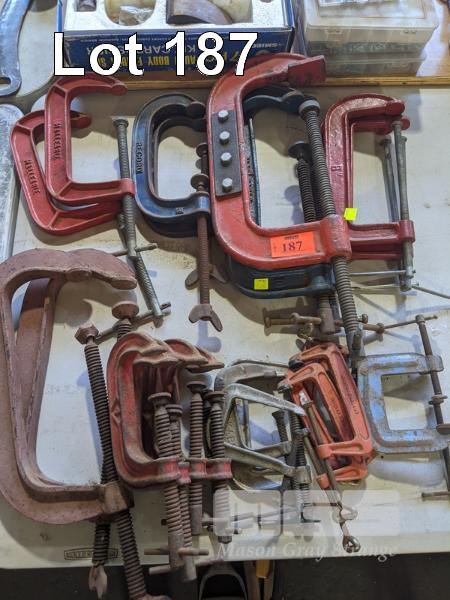 ASSORTED G-CLAMPS, 4 x 10", 2 X 8", 4 x 6", 6 x 4" & 6 x 3"