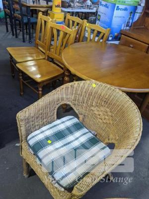 TIMBER 4 PIECE ROUND DINING SETTING, WOVEN WICKER CHAIR