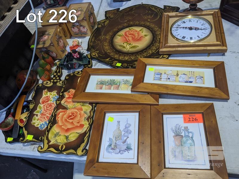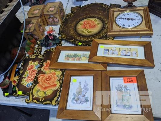 WOODEN FOLK DECORATIVE ITEMS, WALL PLAQUES, SPOONS, GOBLET, TRAY, TRINKET BOXES, FOLK DOLL, ETC
