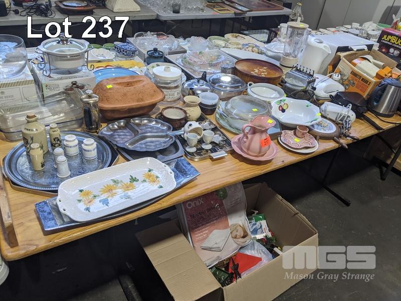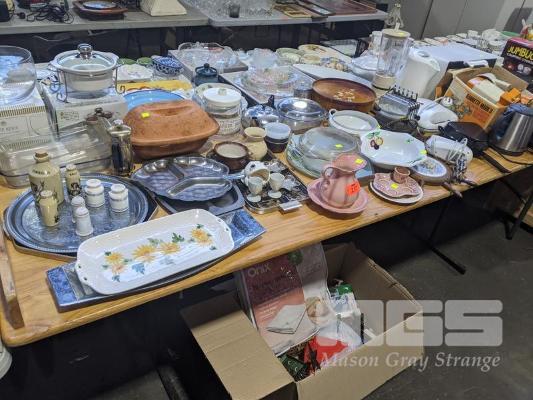 ASSORTED KITCHENWARE & APPLIANCES, 1 x TABLE, 1 x BOX